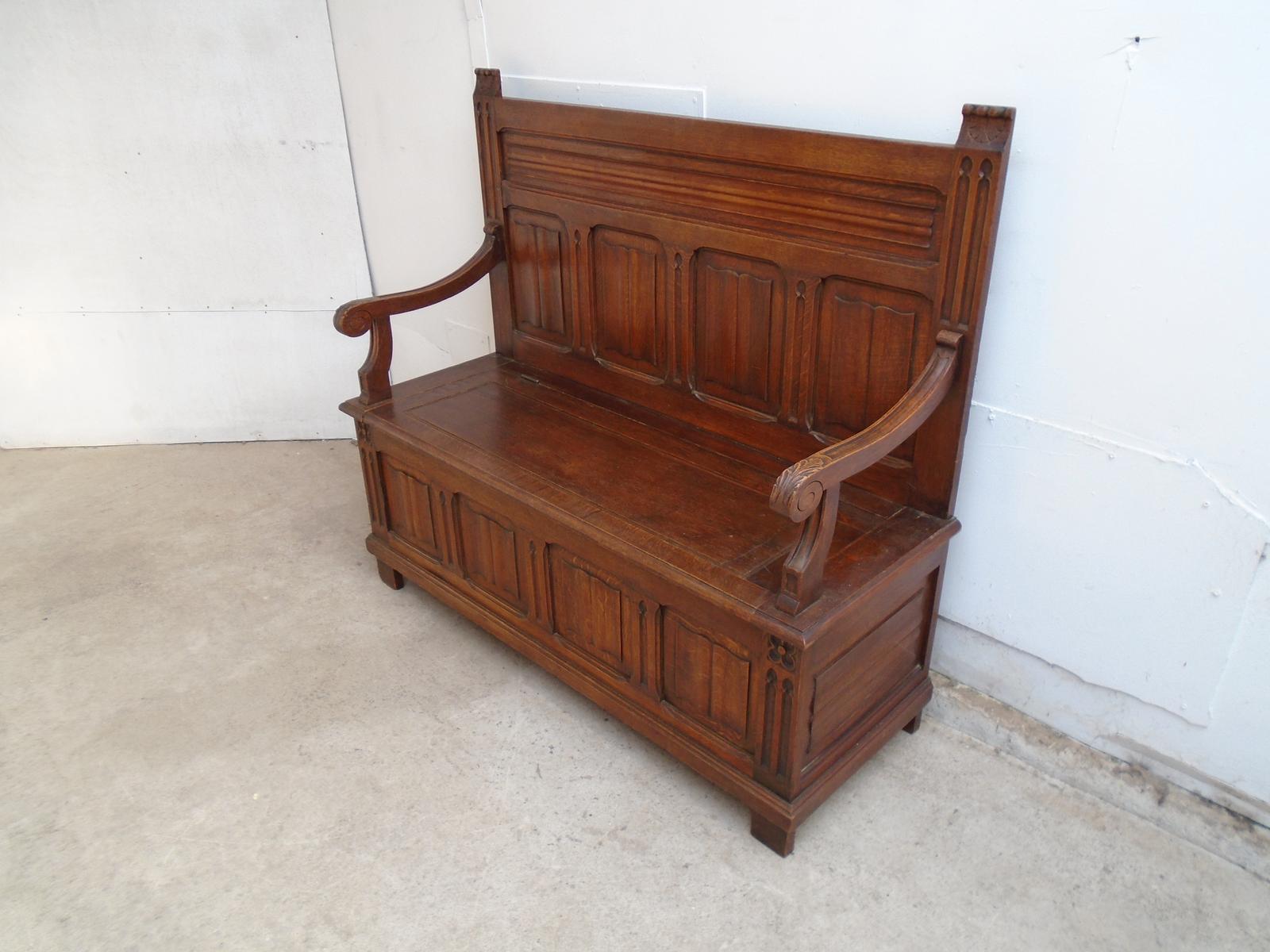 Lovely 1920s Golden Oak Linenfold 2 Seater Box Settle / Bench