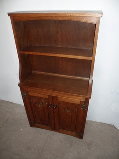 Lovely 1920s Linen Fold Golden Oak 2 Door 1 Shelf / Bookshelf