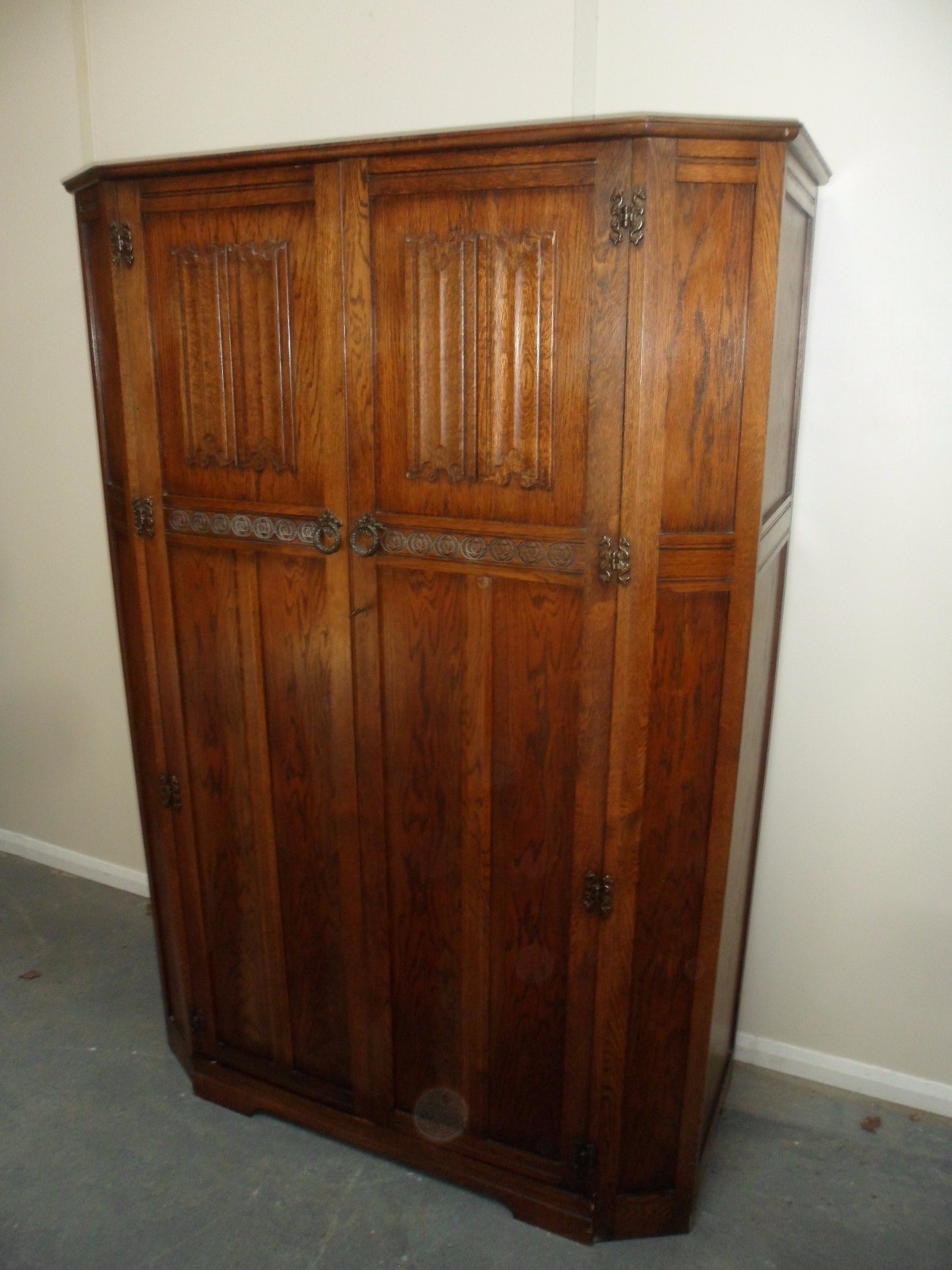 Lovely 1920s Linenfold Carved Large Golden Oak 2 Door Wardrobe