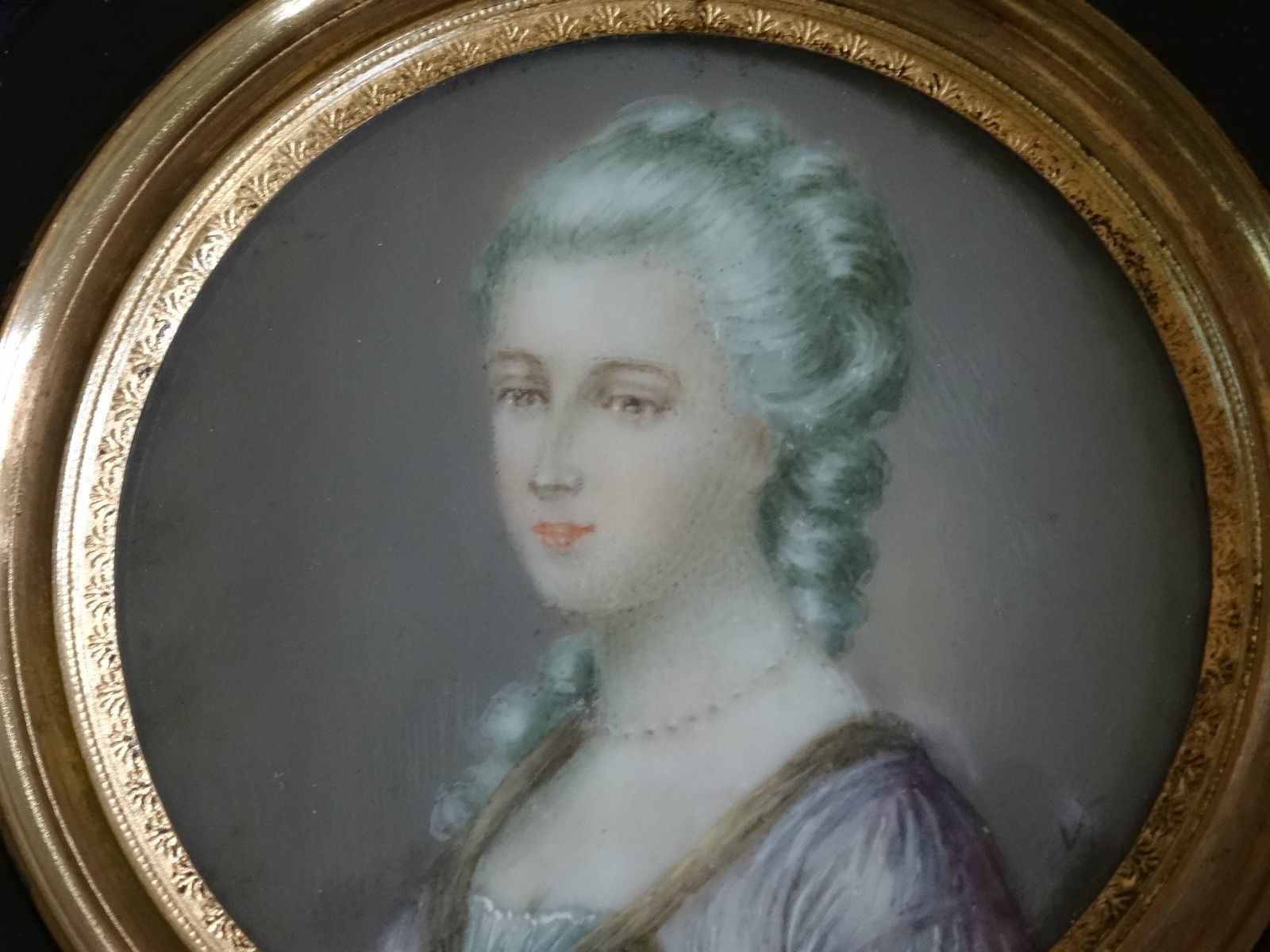 Lovely 19Thc Miniature Circular Oil Portrait Painting of a Society Lady