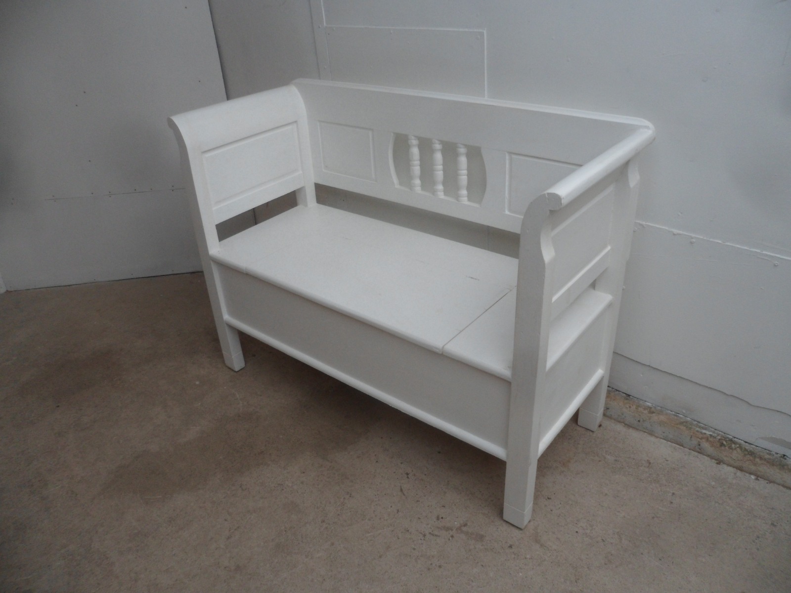Lovely 2 Seater Reclaimed Pine Panelled Painted White Hall Box / Settle / Bench