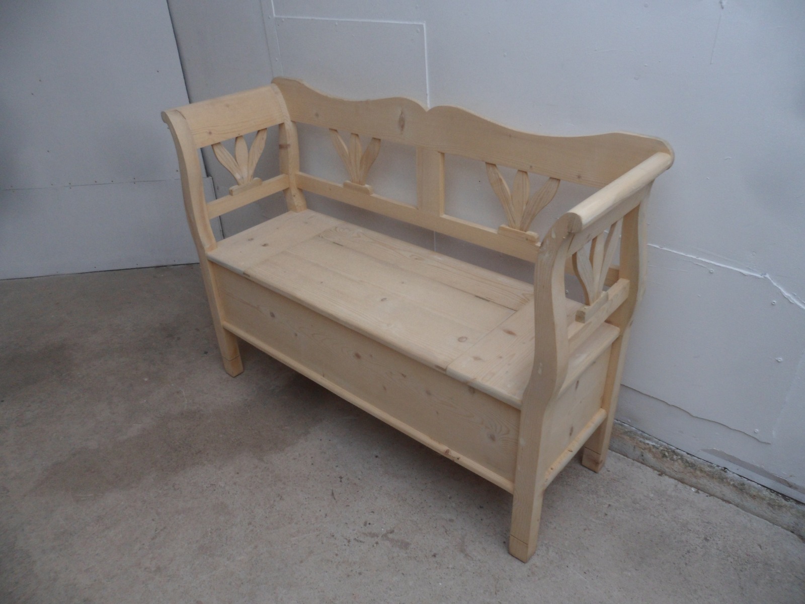 Lovely 2 Seater Reclaimed Pine Pretty Motif Hall Box / Settle / Bench to Wax / Paint