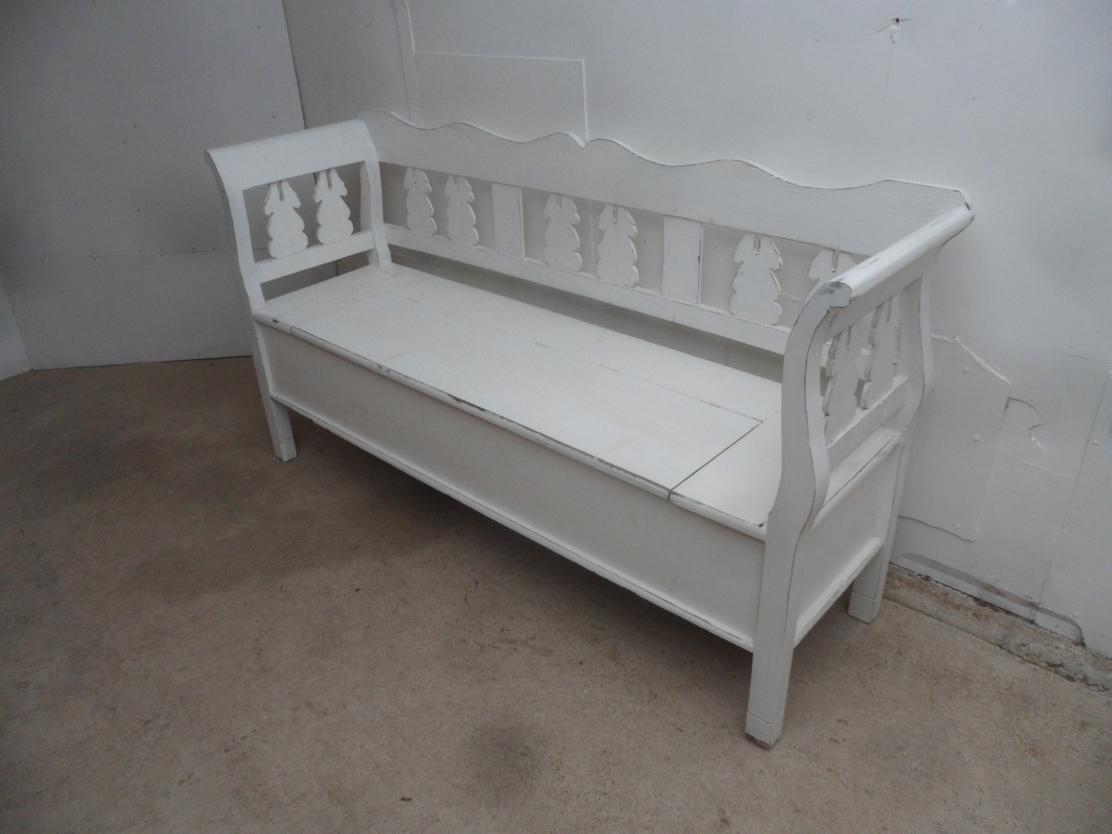 Lovely 2/3 Seater Antique Pine Painted White Hall / Kitchen Box / Settle / Bench