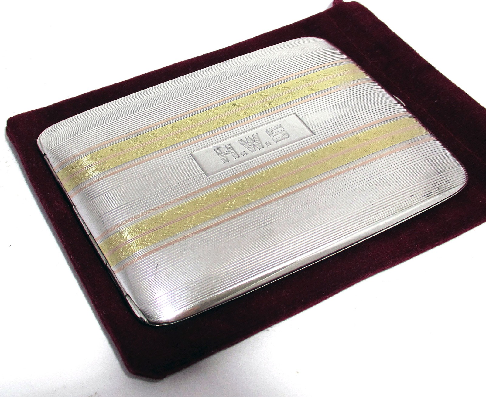 Lovely 3-Tone 14K Gold & Rose Gold Sterling Silver Slim Design Cigarette Holder Vesta Box Business Credit Card Case American Elgin Am Mfg Co