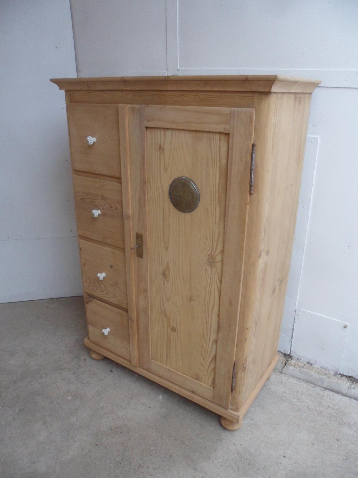 Lovely 4 Drawer 1 Door Antique Pine Kitchen / Storage Cupboard to wax / paint