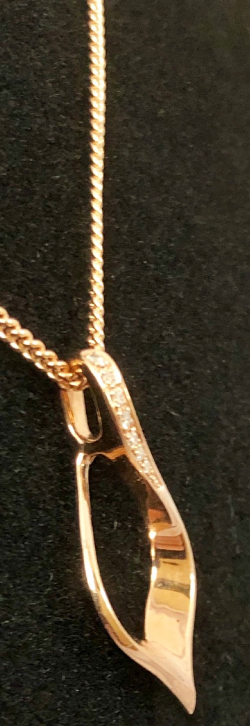 Lovely 9ct Rose Gold Diamond Pendant On Chain