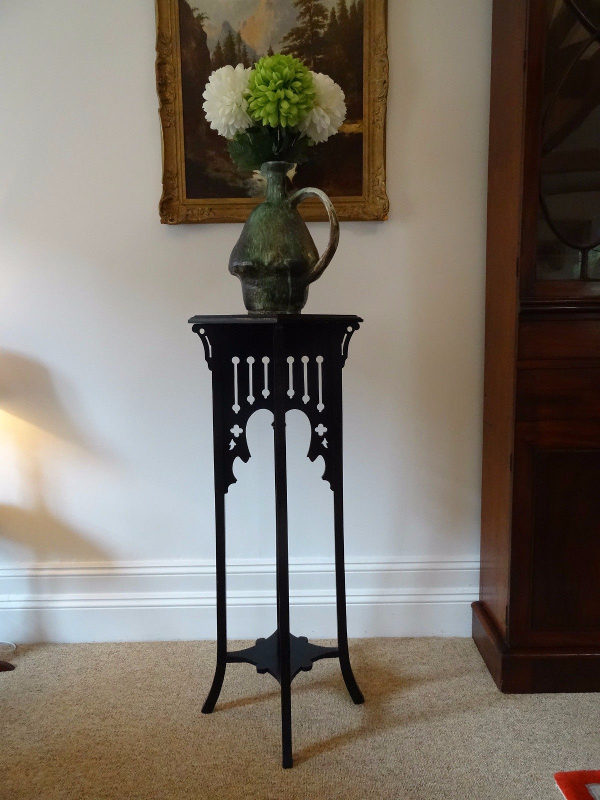 Lovely Antique Ebony Black Pierced Gothic Lamp - Plant Jardinière Stand