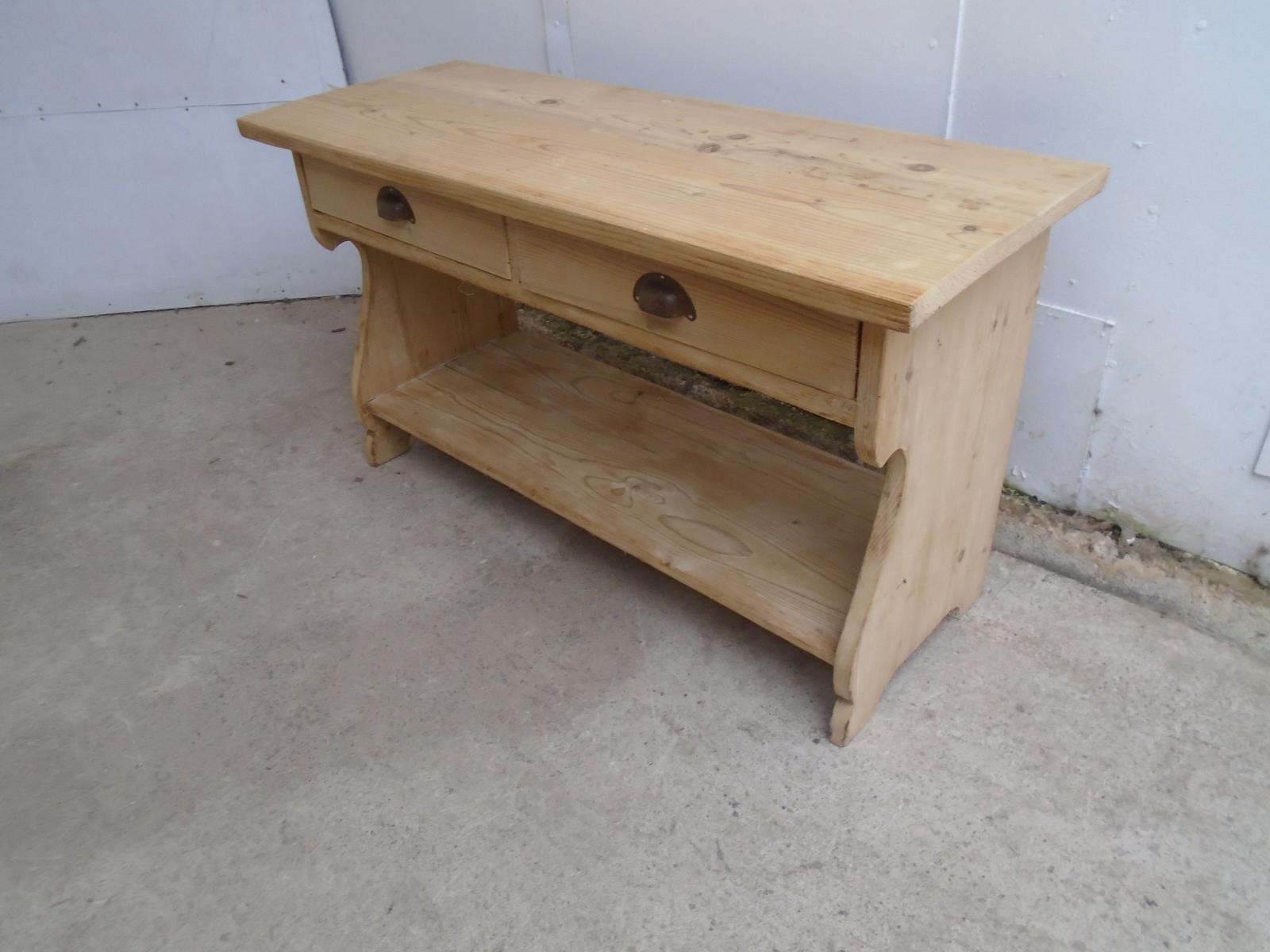 Lovely Antique Pine 2 Drawer Hall Bench / Sofa Table to wax / paint