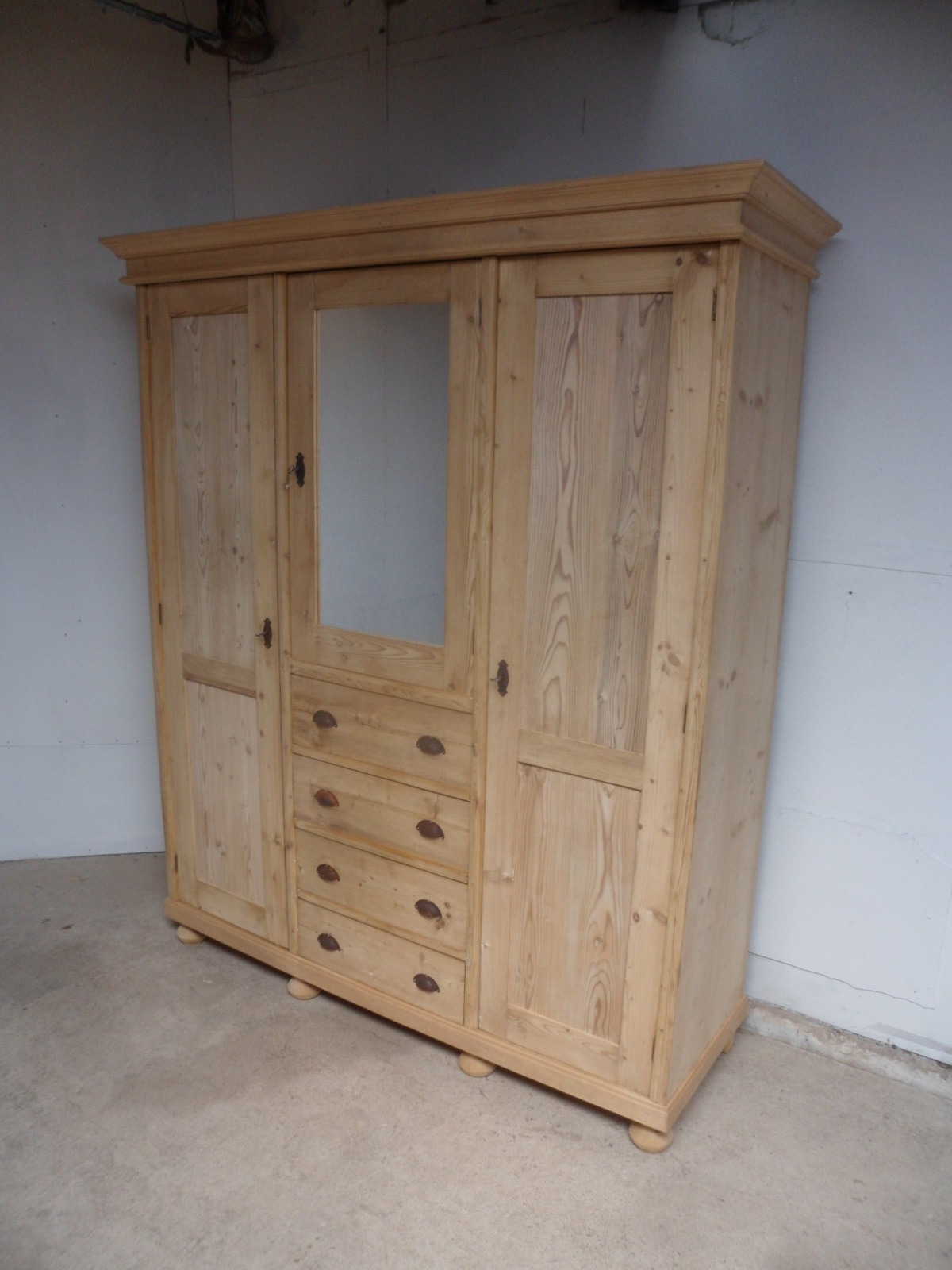 Lovely Antique Pine 3 Door 4 Drawer Knockdown Wardrobe to wax / paint