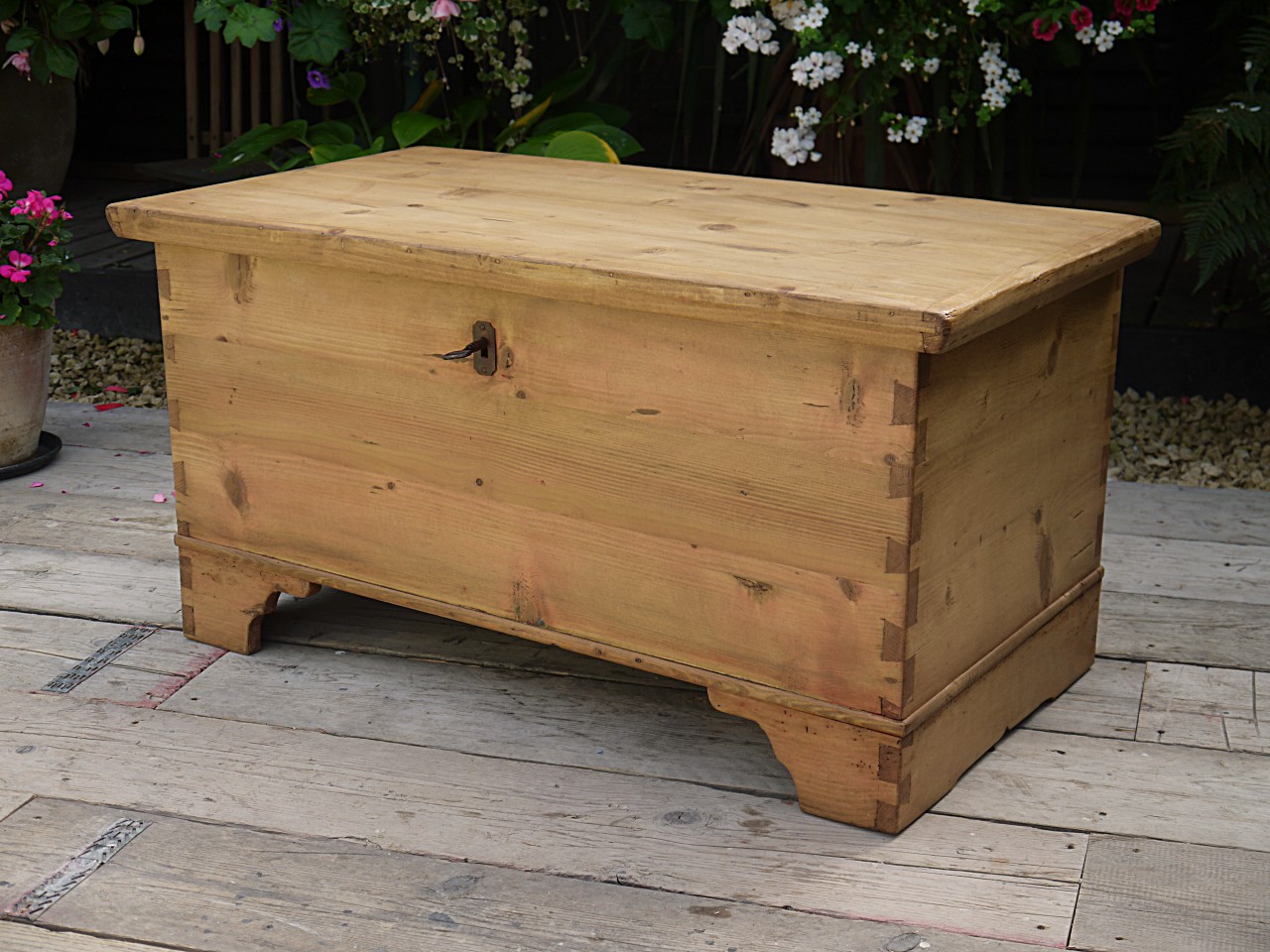 Lovely Antique Victorian Pine Blanket Box with Key! Chest / Trunk / Storage