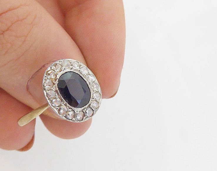 Lovely Art Deco 18ct Gold Sapphire & Diamond Ring