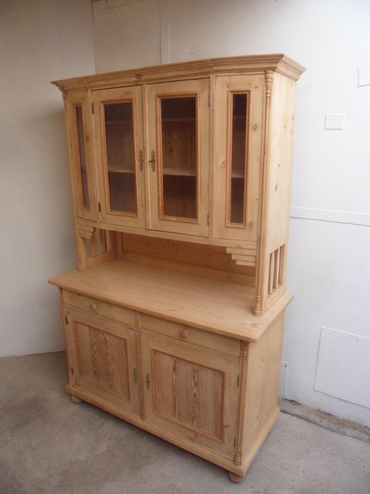 Lovely Art Deco 4 Door Antique Pine Glazed Kitchen Dresser To Paint/Wax
