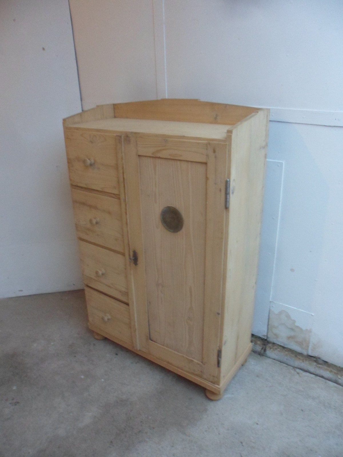 Lovely Art Deco 4 Drawer 1 Door Old Pine Kitchen Cupboard to wax / paint