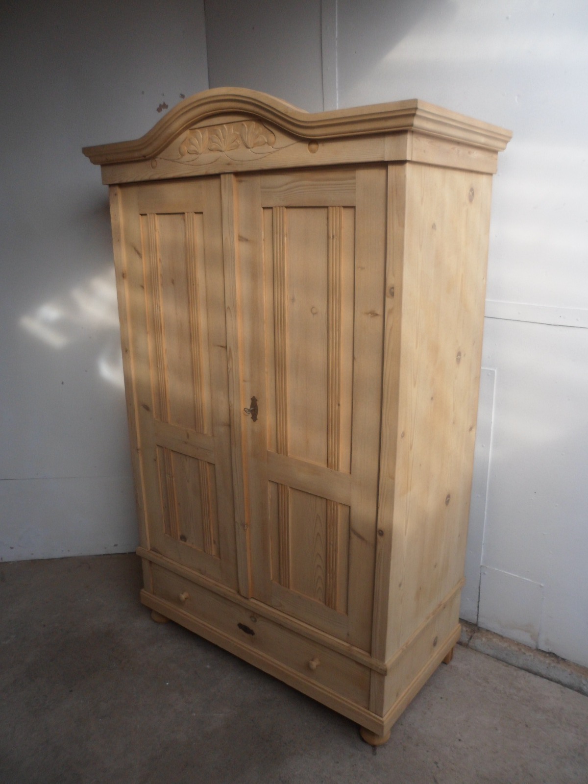 Lovely Art Nouveau Carved Antique Pine Knockdown Wardrobe to paint / wax