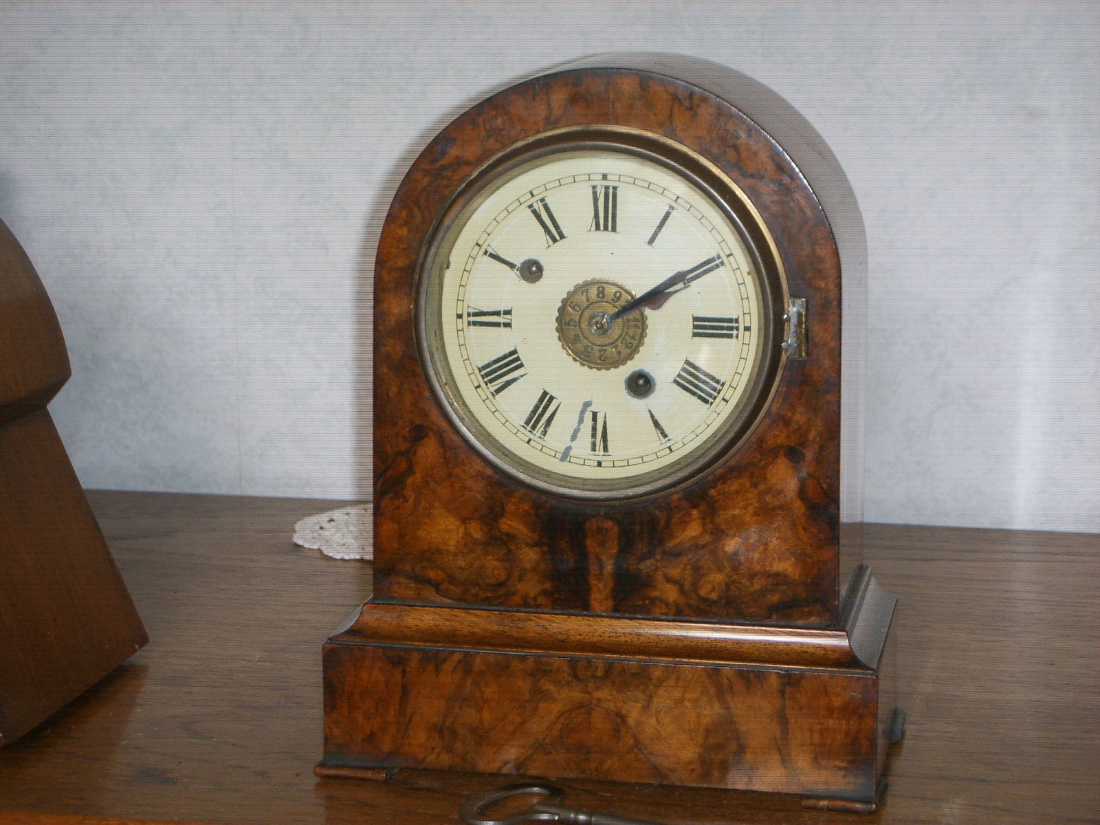 Lovely Burr Walnut Clock with Central Alarm c.1890