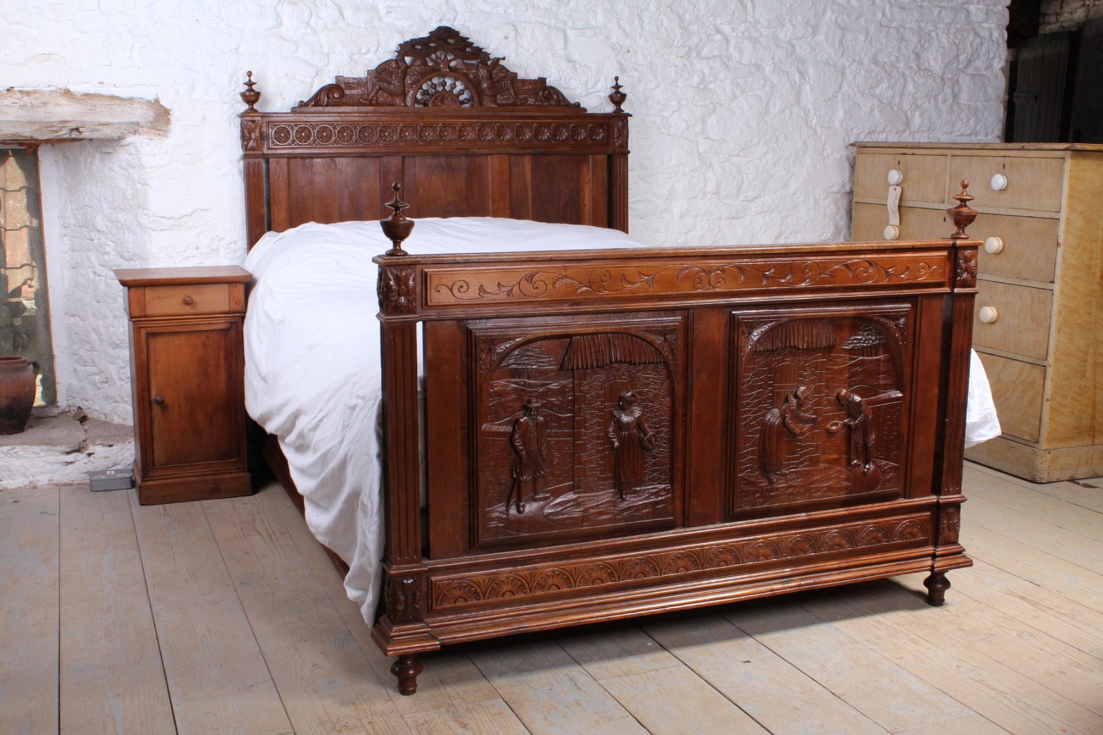 Lovely Carved Oak Bretton Double Marriage Bed (1 of 1)