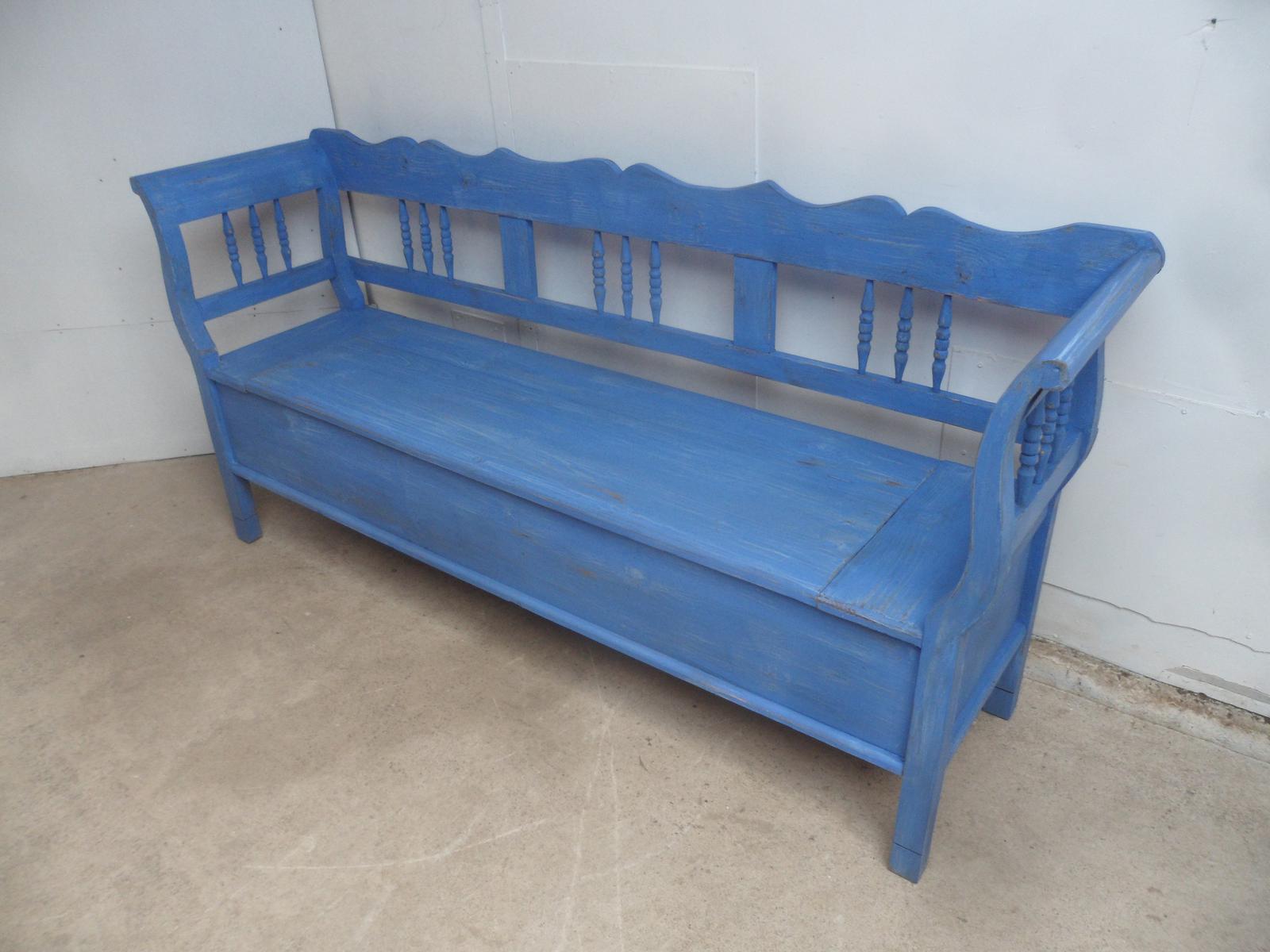 Lovely Chelsea Blue 3 Seater Antique Pine Kitchen / Hall Box Settle / Bench