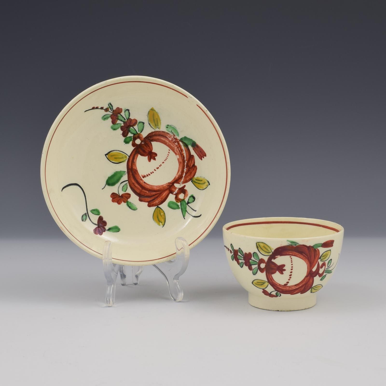 Lovely Creamware Pottery Tea Bowl & Saucer King's Rose Pattern c.1785 (1 of 8)