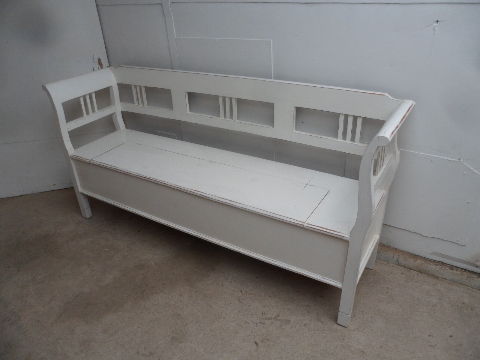 Lovely Dowelled Painted White Old Pine 3 Seater Box Settle / Bench