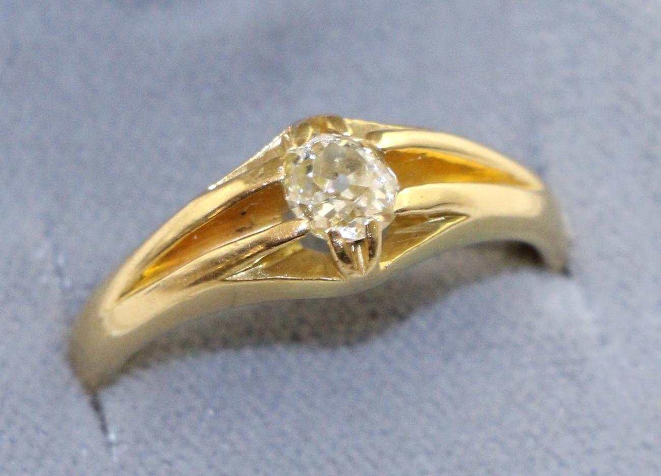 Lovely Edwardian 18ct Gold Diamond Solitaire Gypsy Ring