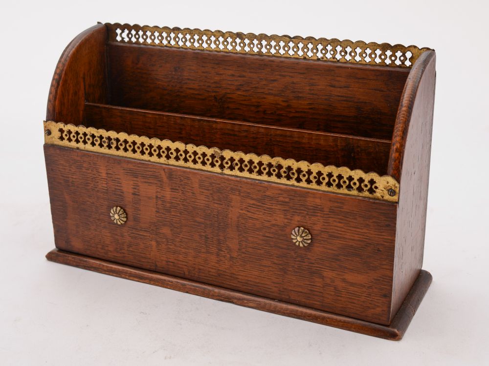Lovely Edwardian Brass & Oak Letter Rack c.1905