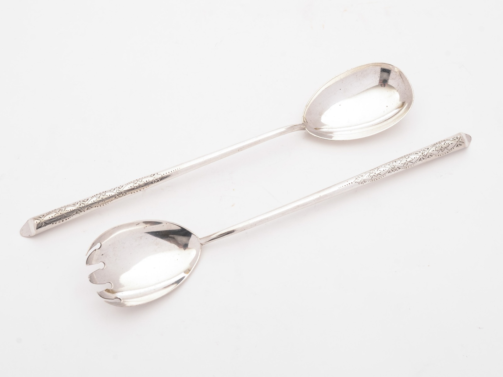 Lovely Edwardian Silver Salad Servers, Sheffield 1904
