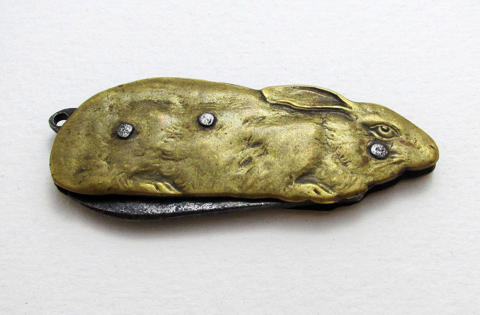 Lovely French Antique Brass Rabbit / Hare Pocket Folding Knife, 19th-century Victorian Novelty Penknife c.1890
