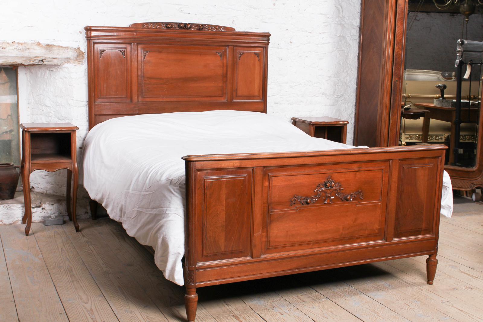 Lovely French Cherry King Size Bed with Simple Carvings (1 of 9)