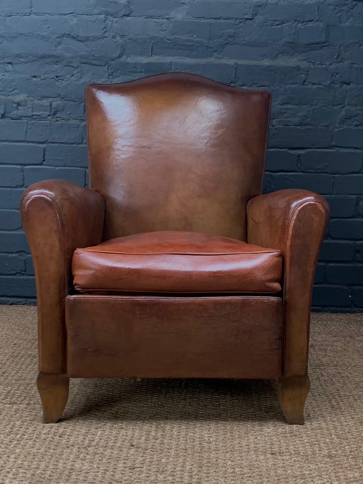 Lovely French Leather Club Chair - Chapeau du Gendarme Model c.1930