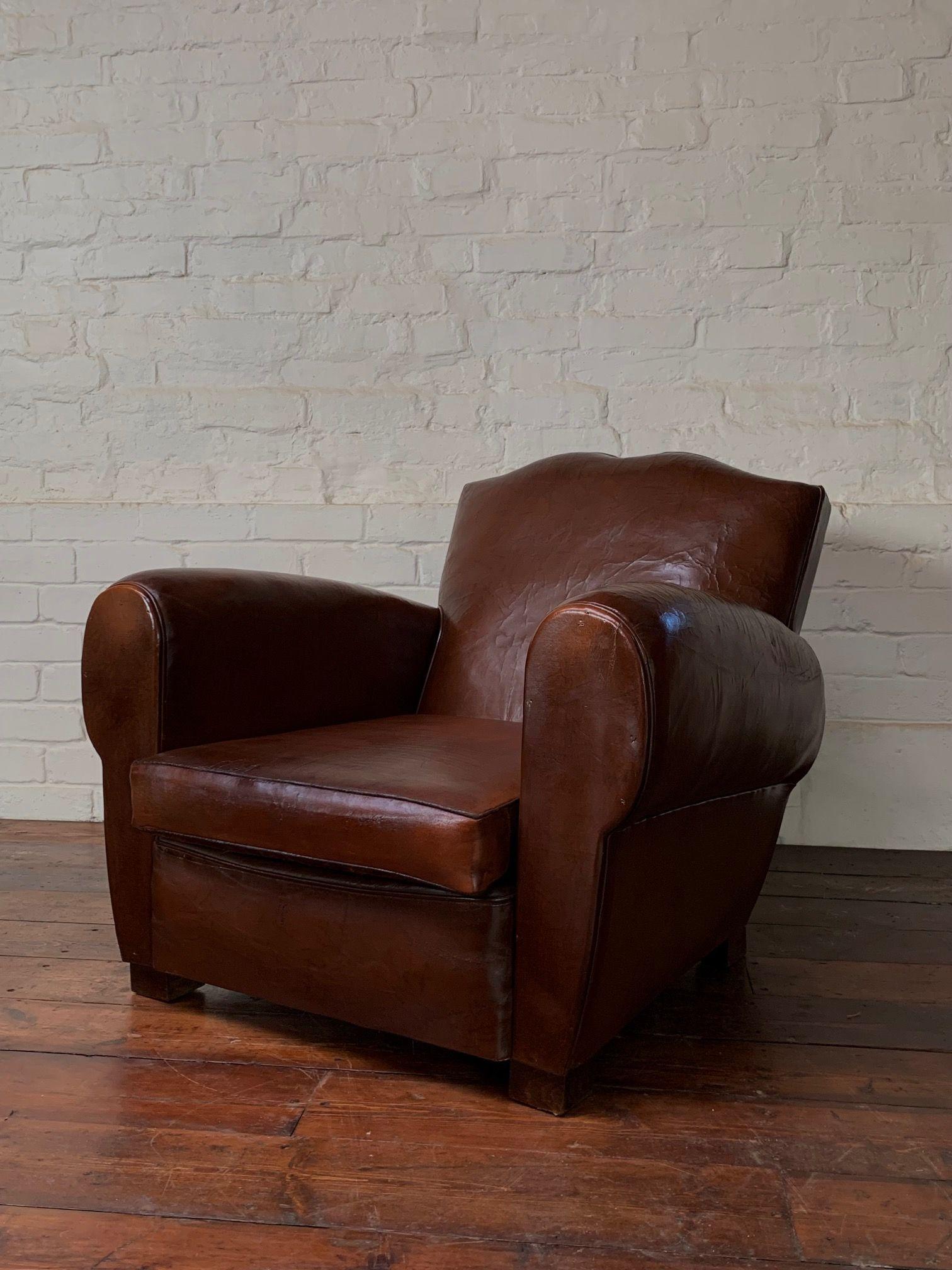 Lovely French Leather Club Chair - Moustache Model c.1930 (1 of 8)