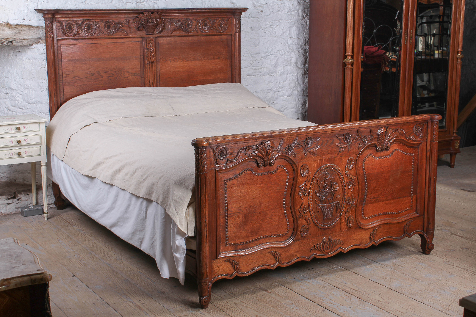Lovely French Provincial Carved Oak King Size Bed