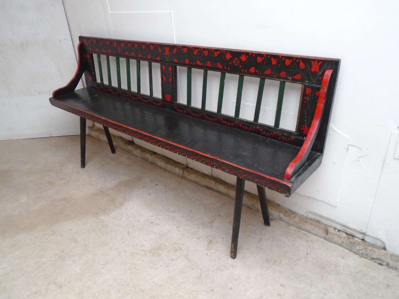Lovely Georgian Antique Pine Painted Black / Red / Green 3/4 Seater Hall Bench