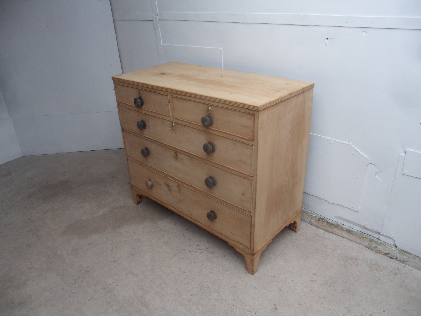 Lovely Georgian Large Antique Pine 5 Drawer Chest of Drawers to Wax / Paint