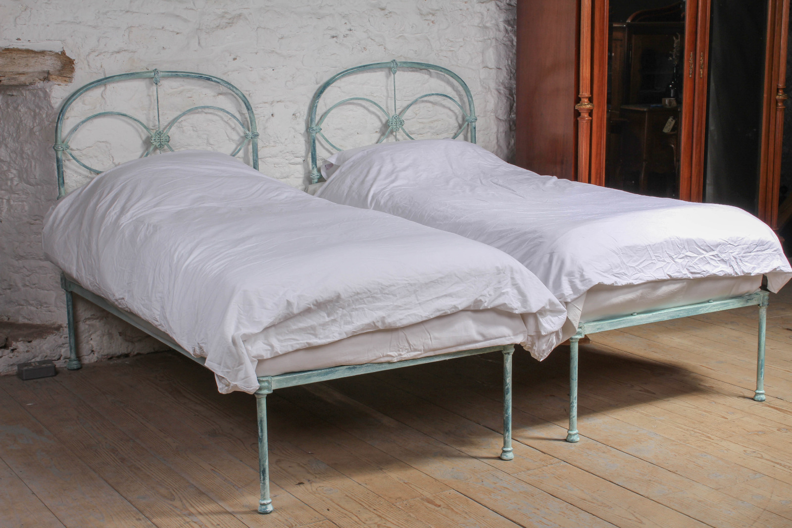 Lovely Hand Finished Pair of Single Iron Beds (can be joined)