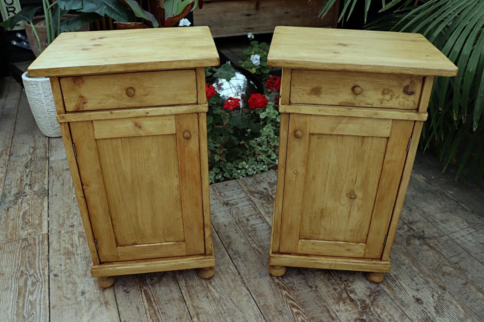 Lovely & Large Pair of Old Stripped Pine Bedside Cabinets / Cupboards