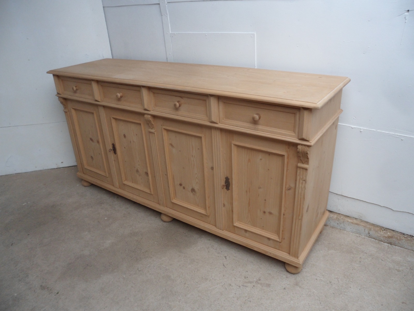 Lovely Large Reclaimed Pine Moulded 4 Door Kitchen Dresser Base to wax / paint