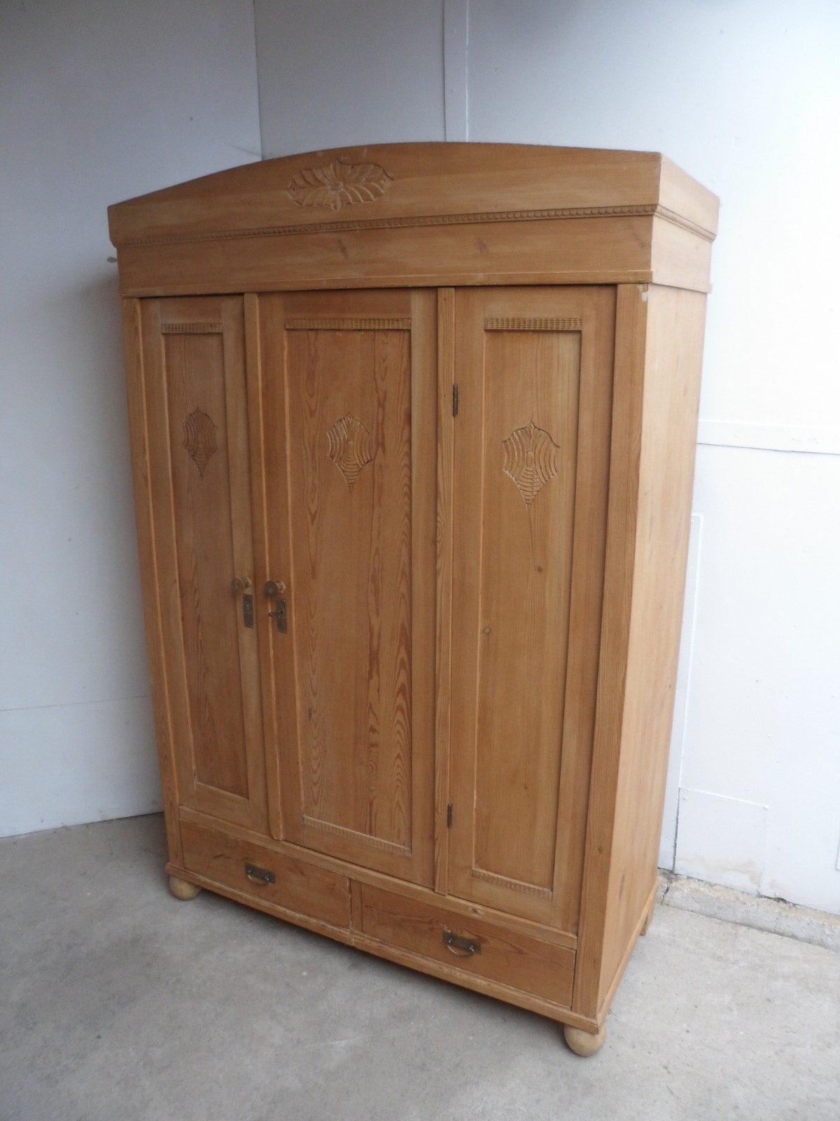 Lovely Late Victorian Antique Pine Triple Waxed Child's Wardrobe