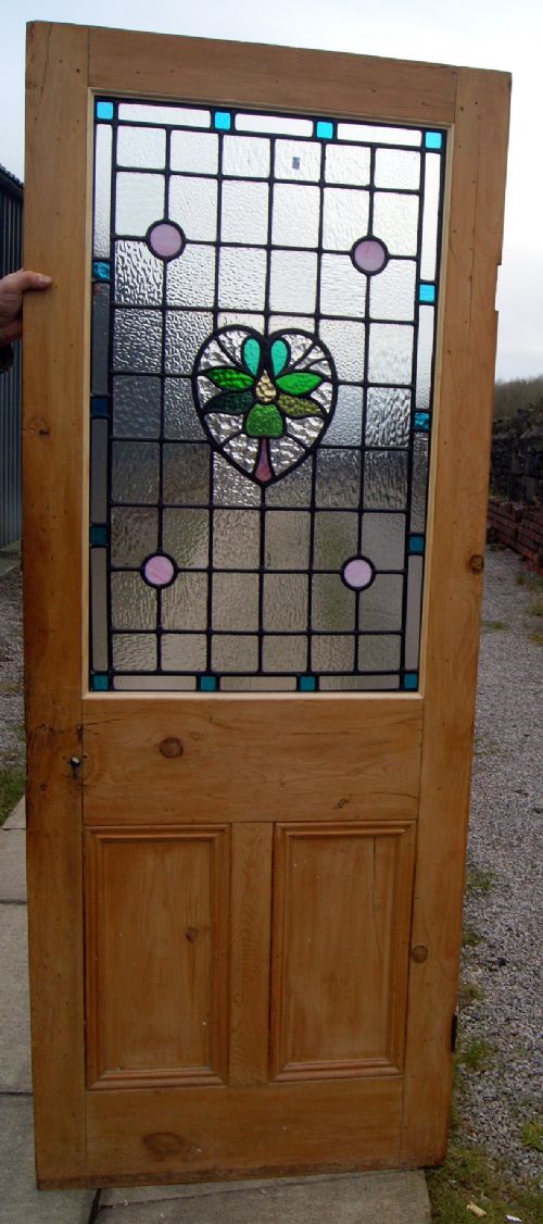 Lovely Leaded Glass Stripped Pine Internal Door c.1920