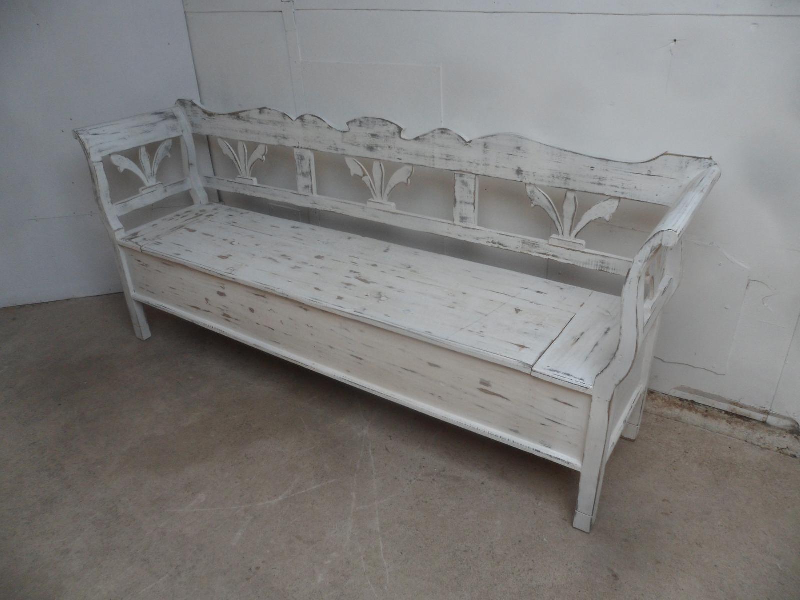 Lovely Mottled White 3-4 Seater Antique Pine Kitchen / Hall Box Settle / Bench