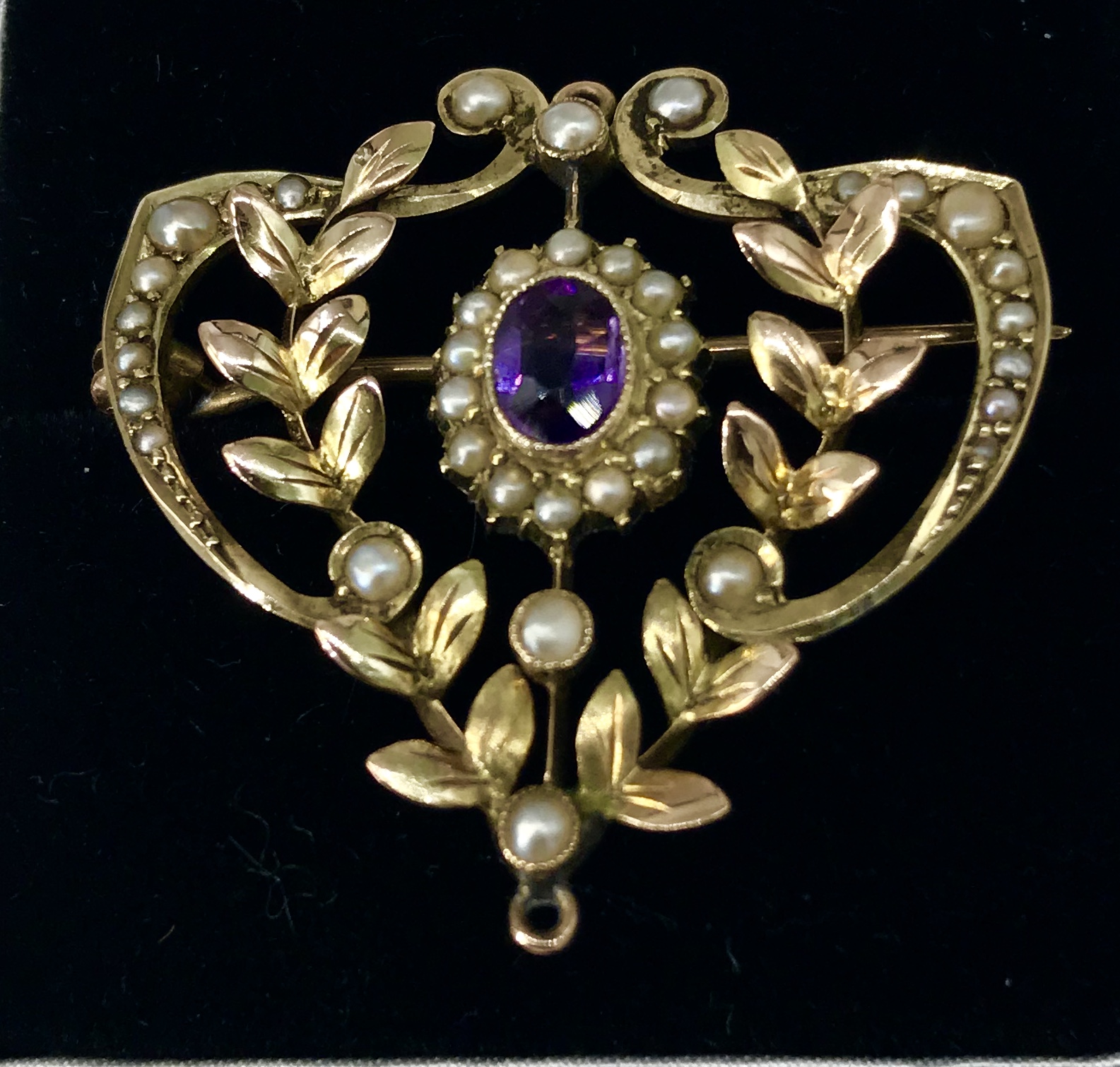 Lovely Neo-Classical Style 14ct Gold & Amethyst Brooch c.1900