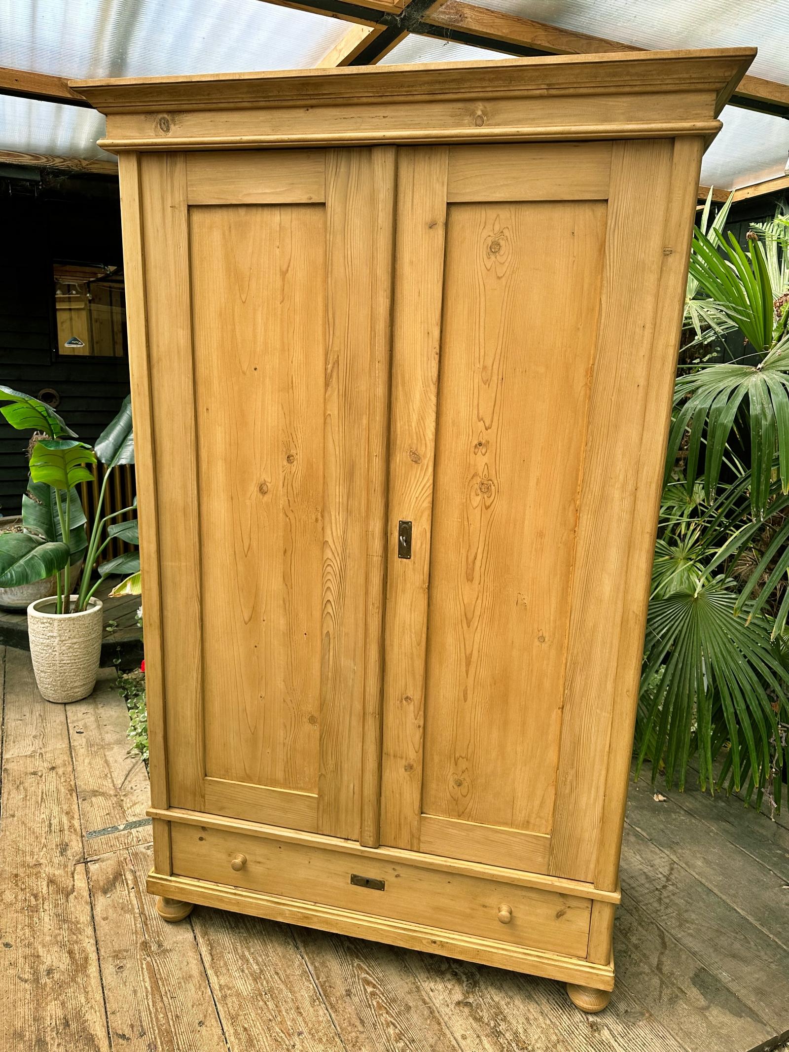 Lovely Old Antique Pine Double Knock Down Wardrobe