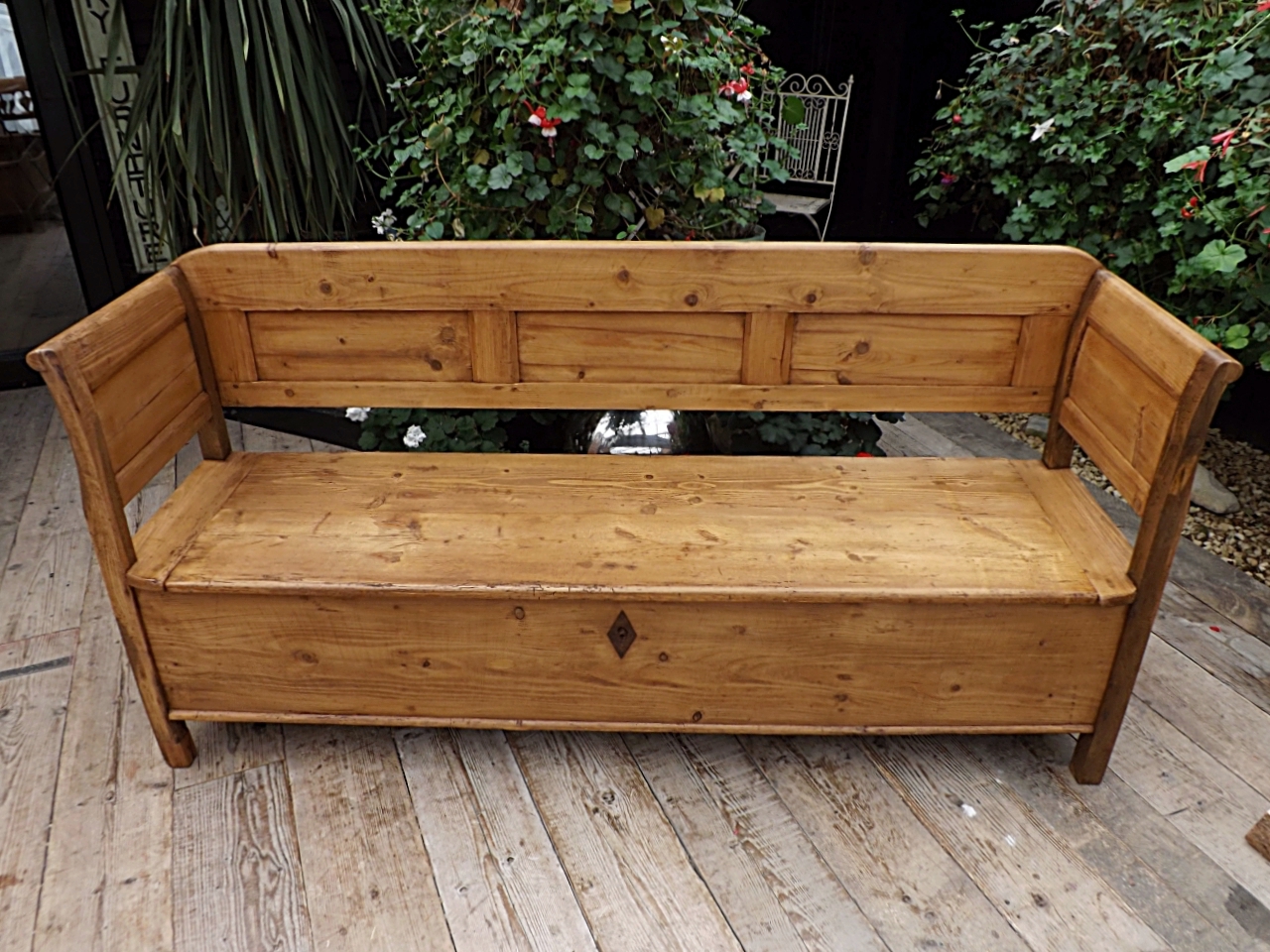 Lovely Old Antique Pine Hungarian Box / Storage Bench - Pew / Settle