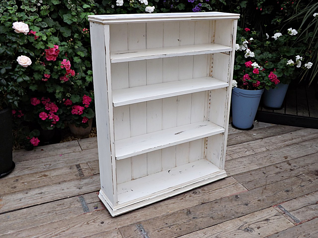 Lovely Old Antique Pine / Painted White Adjustable Bookcase / Shelves / Shabby Chic