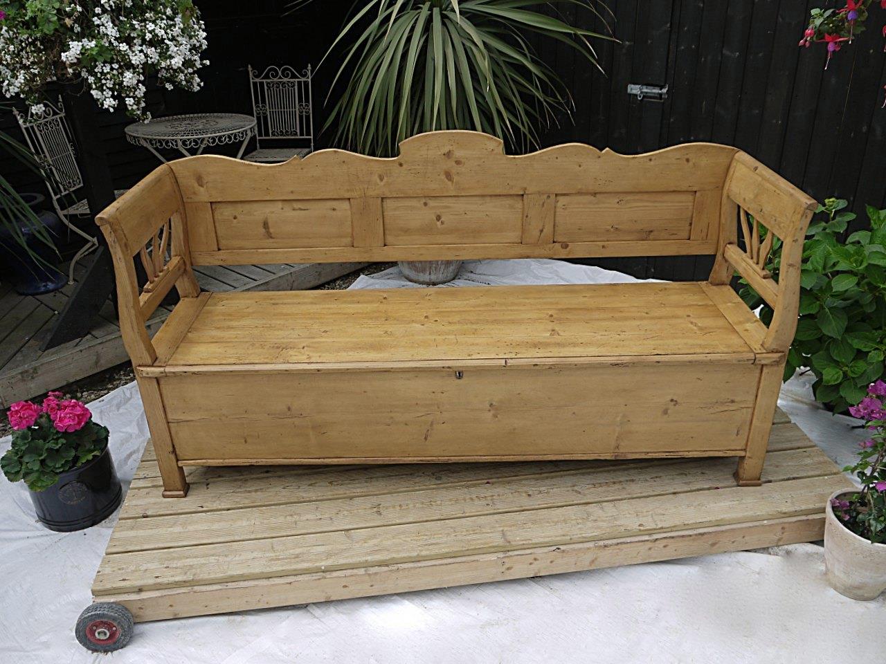 Lovely! Old Antique Victorian Pine Hungarian / Monks Box Bench / Settle / Pew / Storage