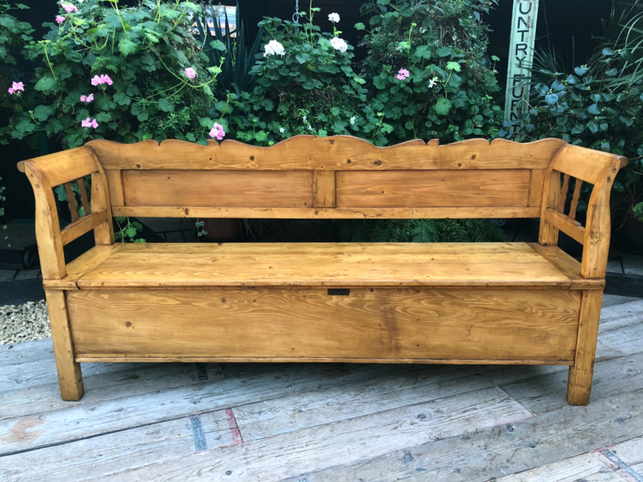 Lovely! Old Antique Victorian Pine Hungarian Monks Box Bench / Settle / Pew / Storage