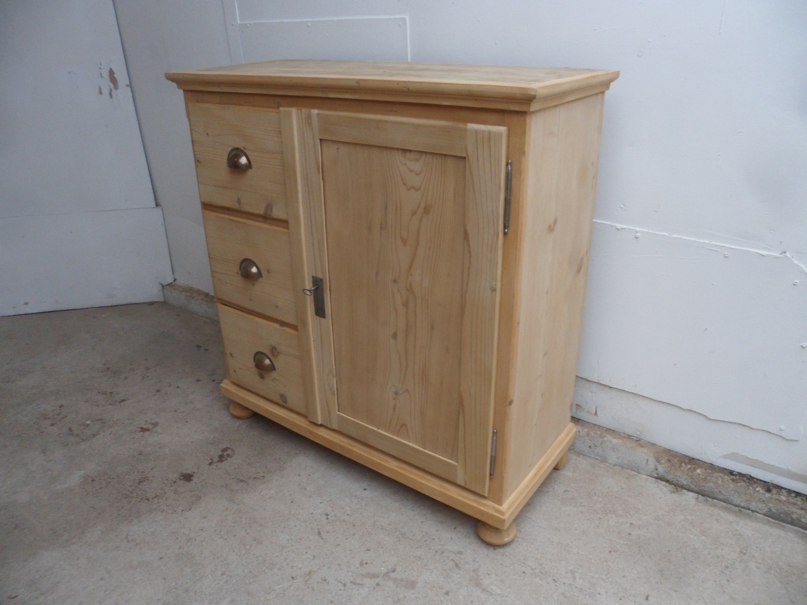 Lovely Old Pine 3 Drawer Cup Handle Kitchen Food Cupboard to wax / paint