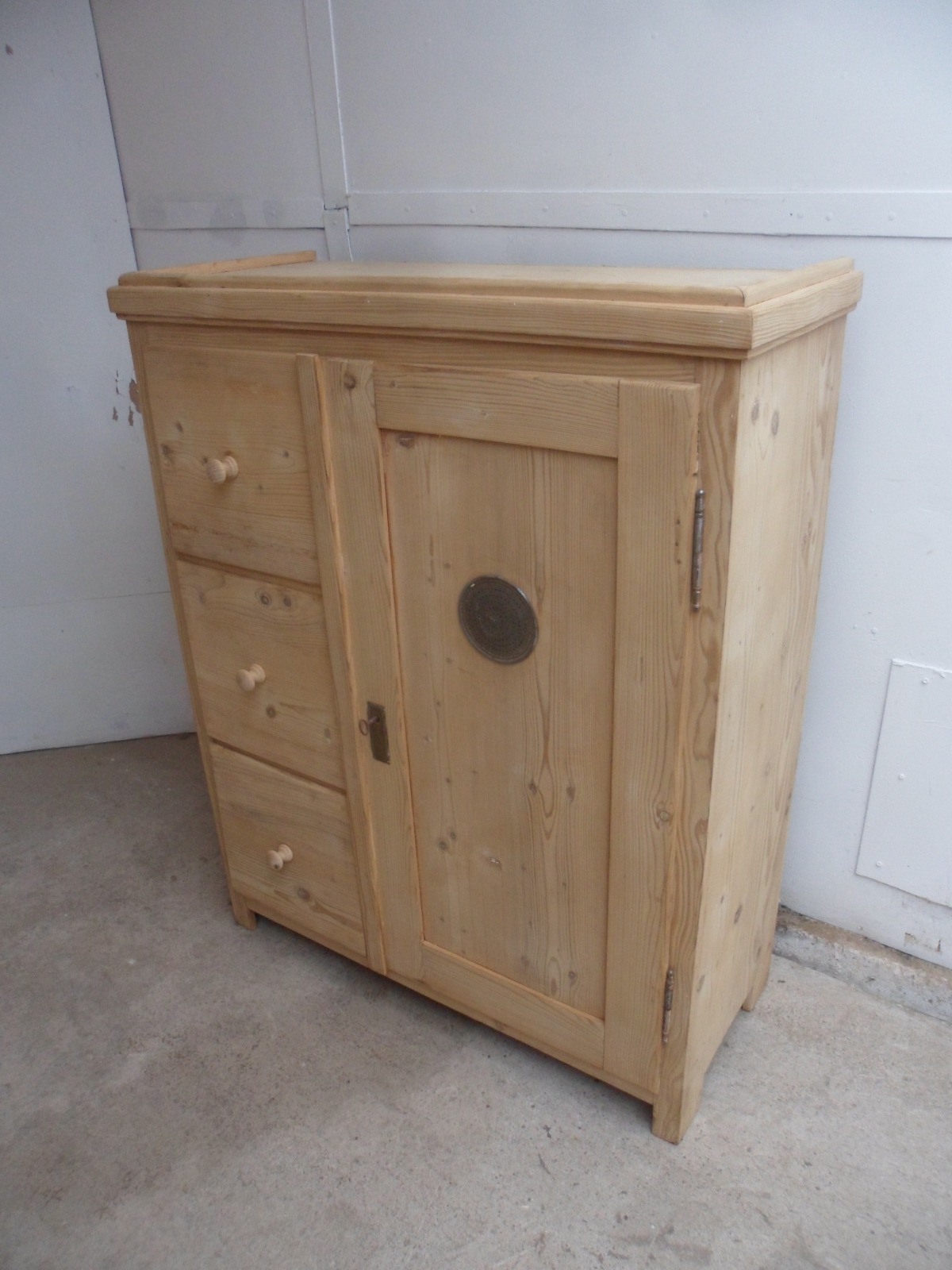 Lovely Old Pine 3 Drawer Kitchen Food Cupboard to wax / paint