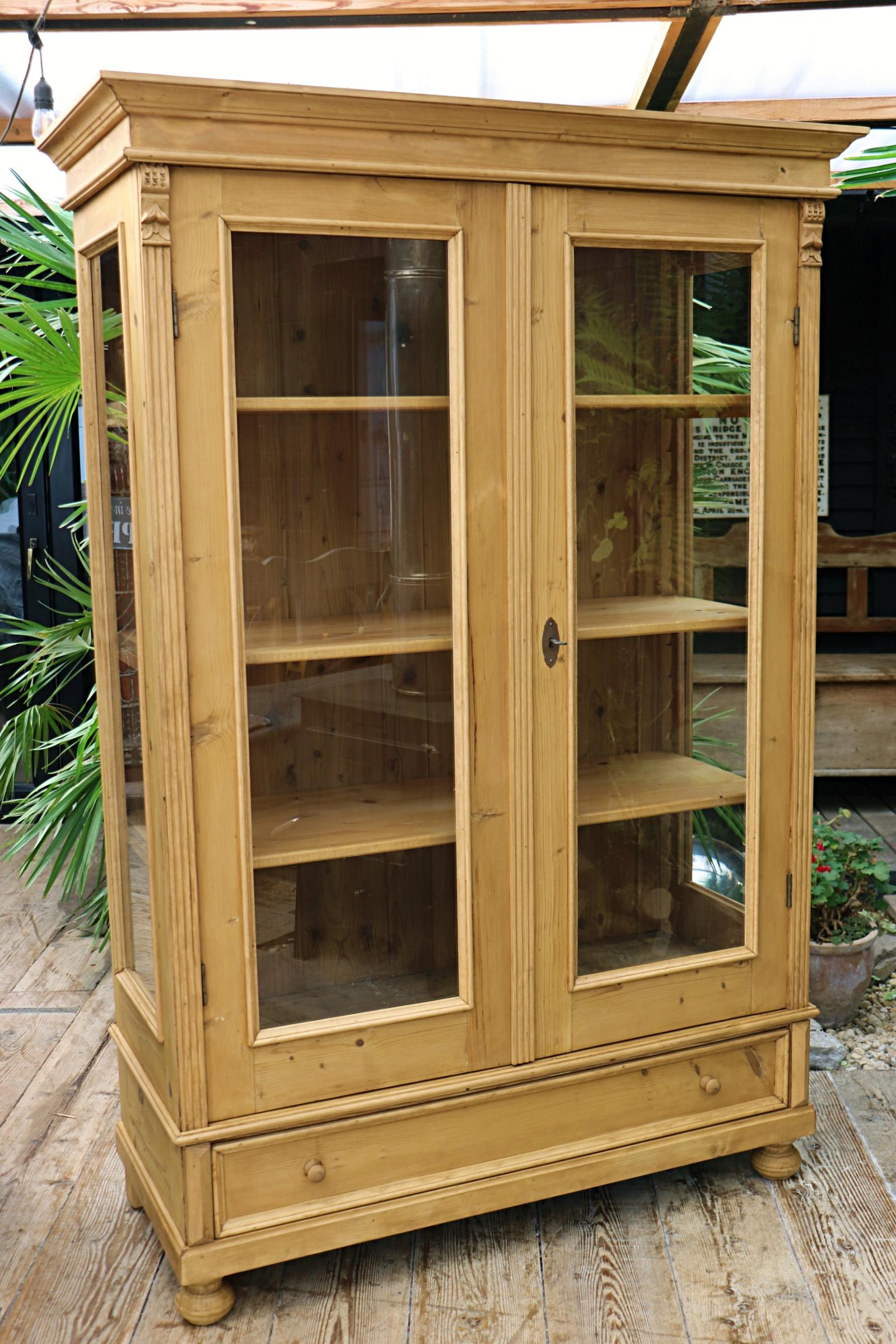 Lovely Old Pine Glazed Adjustable Display Cabinet / Cupboard / Linen / Larder