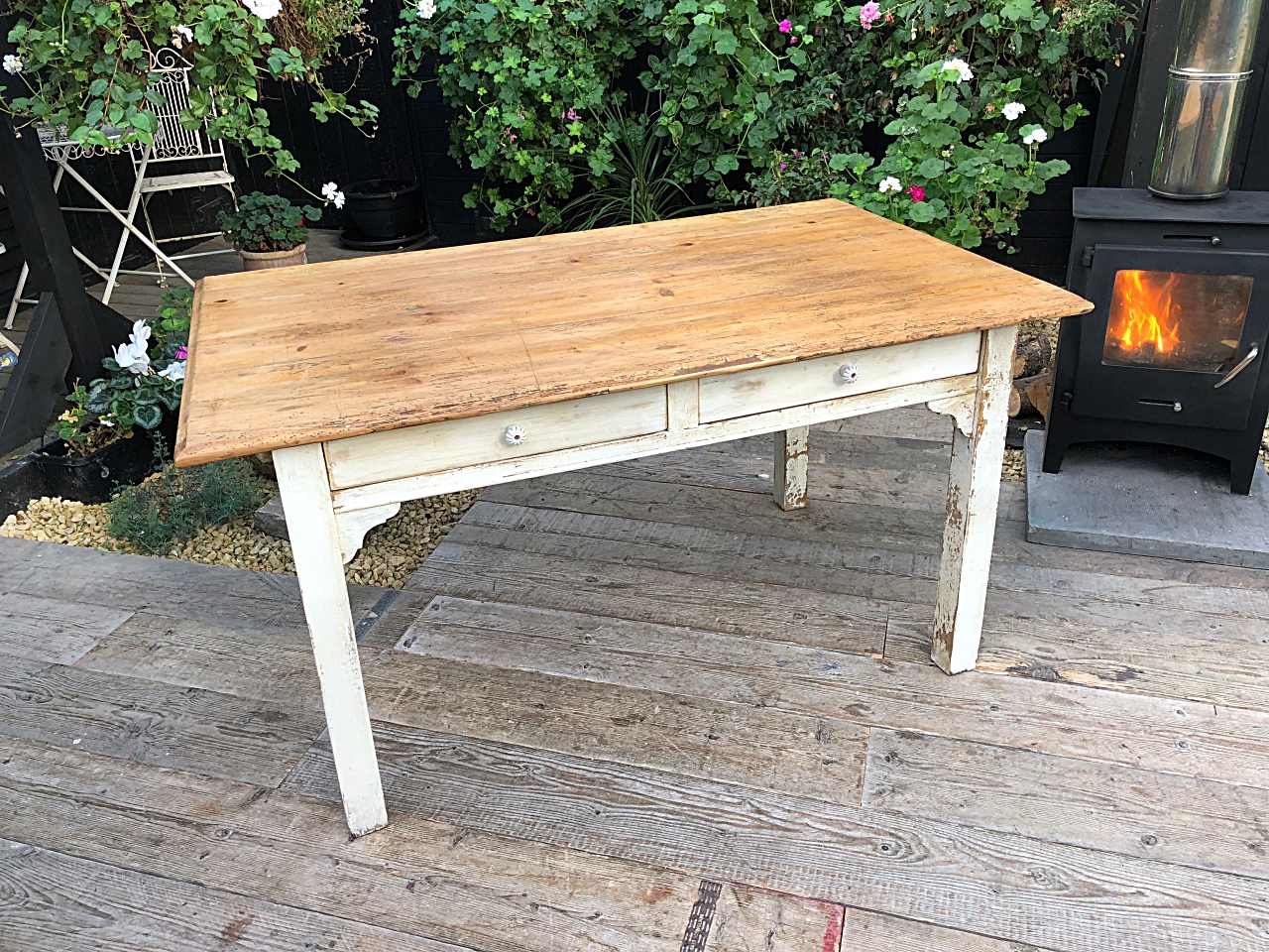 Lovely Old Shabby Chic Pine Painted Kitchen Table / Dining Table / Ideal Desk