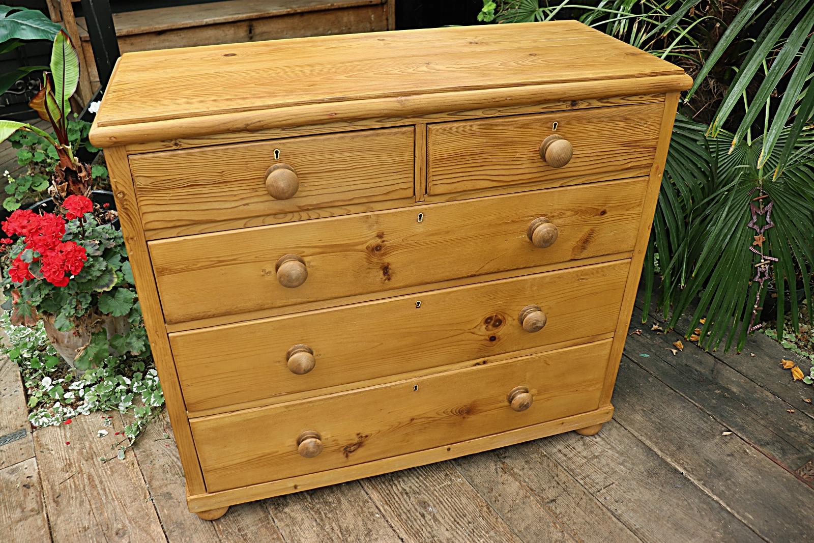 Lovely Old Stripped Pine Chest Of Five Drawers